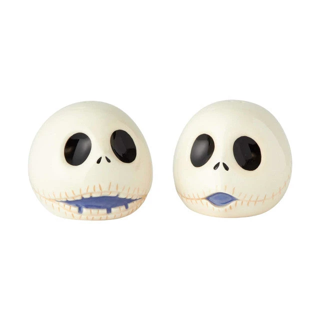 Add a frightful dash of Disney to the kitchen table with this eye-catching set of salt and pepper shakers. Handcrafted and hand-painted to precision, the ceramic shakers capture two of the many skulls used in Jack Skellington’s stop-motion animation.