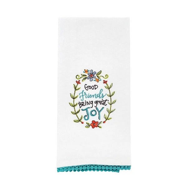 100% cotton tea towel with embroidered design measures 18″ x 28″.