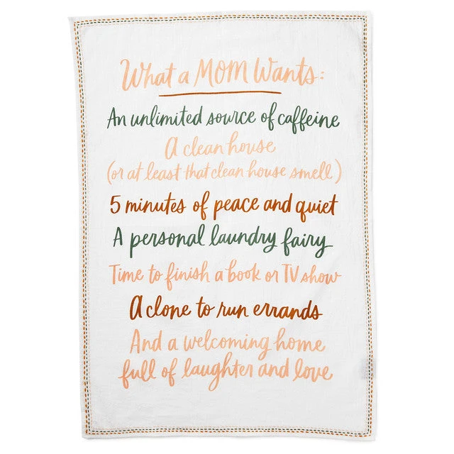 Give mom this adorable mug and tea towel set to show you know her. Kitchen towel and coordinating mug both include funny messages about mom life that are perfect for sharing on Mother’s Day or her birthday. Celebrate your own mom, grandma or a brand-new mom friend with this humorous and useful coffee cup and tea towel gift set.