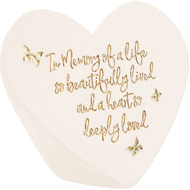 In Memory Of A Life So Beautifully Lives Sympathy Memorial Stone Heart-Shaped With Golden Butterflies