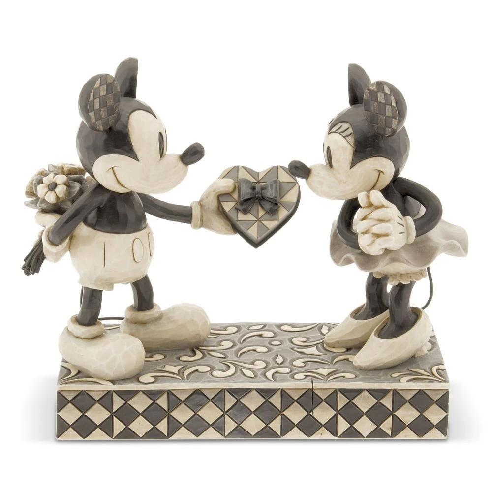 The black and white adventures of Mickey and Minnie Mouse were all the rage in the Jazz Age and still delight audiences of all ages today. Designed by Jim Shore for Disney Traditions, this monochromatic scene is a salute to vintage Disney Animation.