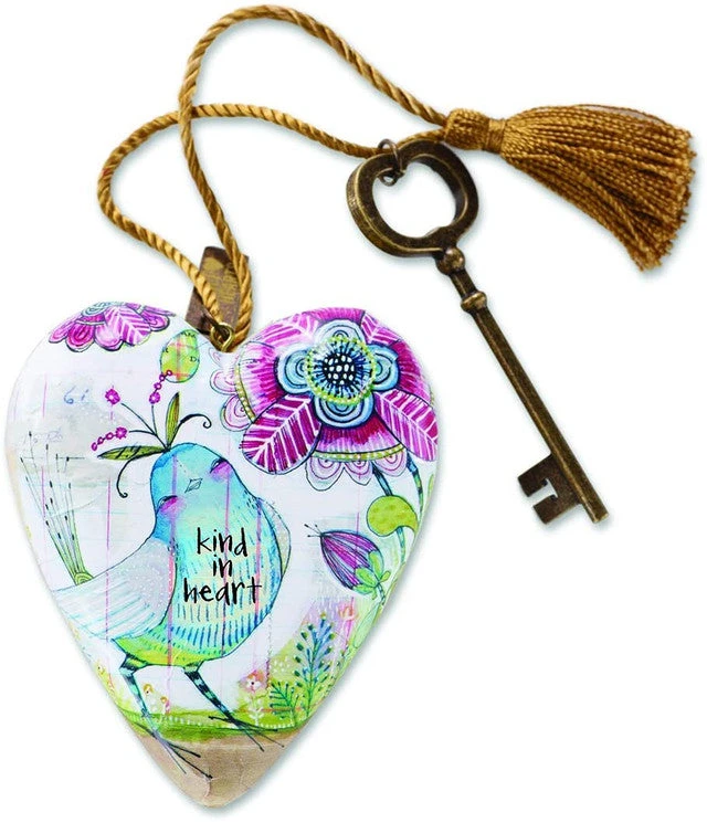 Heart-shaped keepsake symbolizes the bond of friendship and family through meaningful sentiment and vibrant design. It is a gift-ready sculpture with an inspirational message for that special person in your life. It makes a cherished gift for celebrating milestone moments or just because. This Art Heart comes with a special packaging and an ornamental key. Hang the Art Heart using its tasseled cord or make it stand with the attached key easel.