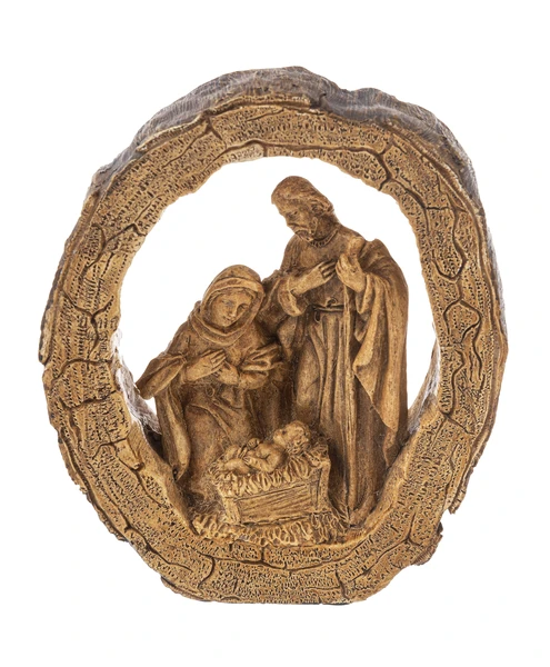 A beautiful decoration for your home to remind you of the reason for the season. Scene depicts Joseph, Mary, and baby Jesus. This resin piece is the perfect size to place on any shelf, mantle or tabletop. Or, if you choose, it can be hung using a ribbon, twine or cord.