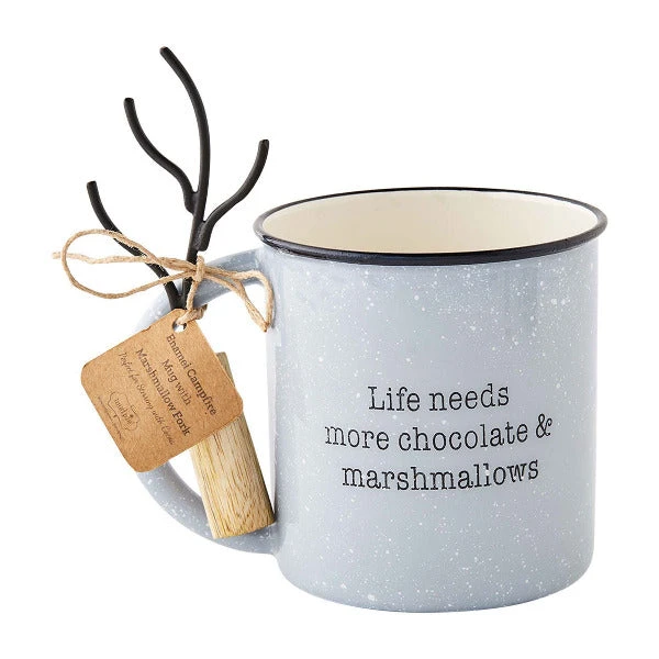 - Mud Pie camp mug includes a wood-handled marshmallow skewer.