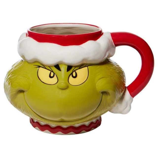 Cuddly as a cactus and charming as an eel, this holiday mug captures the king of Christmas with personality and style. This green Grinch mug masquerades as Santa, smiling from ear to ear eager to sour your beverage with holiday sneer and cheer!