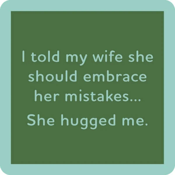 “I told my wife she should embrace her mistakes…She hugged me.”