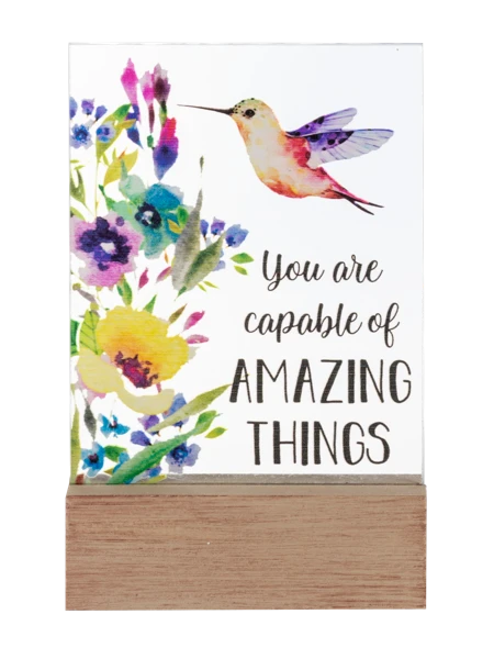 Empower yourself or a loved one with the ‘You Are Capable Of Amazing Things’ Glass Block. This radiant and uplifting piece serves as a constant reminder of the incredible potential within, inspiring confidence and determination to achieve remarkable feats.